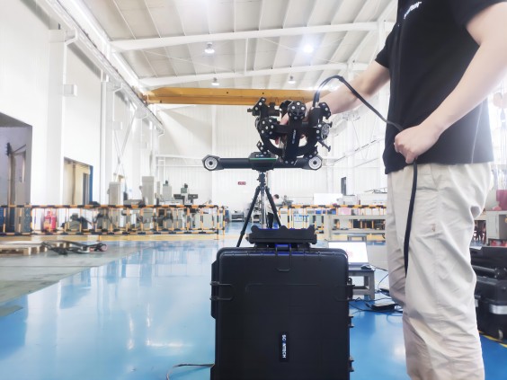 TrackScan-P industrial 3D scanner is a lightweight device with a stable spherical shape that makes it easy to carry around the shopfloor and measure parts in different positions. The system is not easily affected by factors such as vibration, high temperature, and noise in the workshop, which can ensure high-precision and high-stability operations.