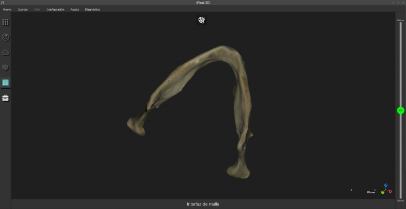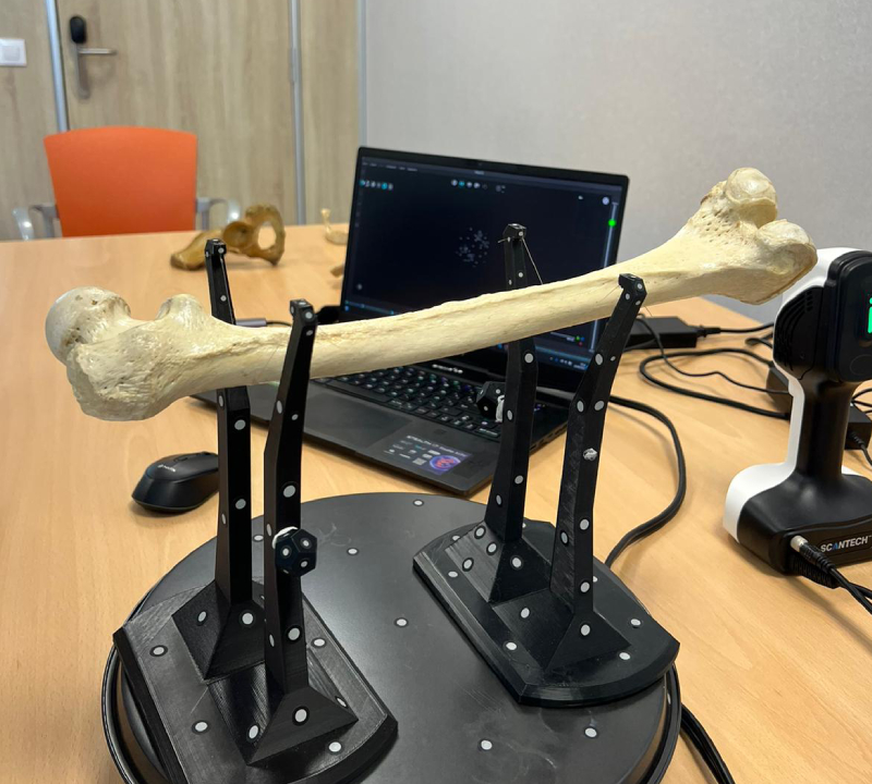 The process the engineer followed was to put the bone on the supports in order to carry out a simple scan. One of the advantages of elevating the part is that it facilitates the separation of the part from the rest of the data.