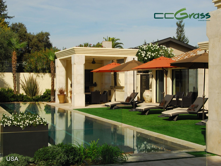 If your entertainment area includes a pool, artificial grass is the perfect companion. Its non-slip surface provides a safe environment for wet feet, reducing the risk of slips and falls. Additionally, artificial grass does not require watering, so there’s no need to worry about water splashing or chlorine damage. It remains vibrant and fresh, creating a seamless blend between your pool area and the surrounding landscape.