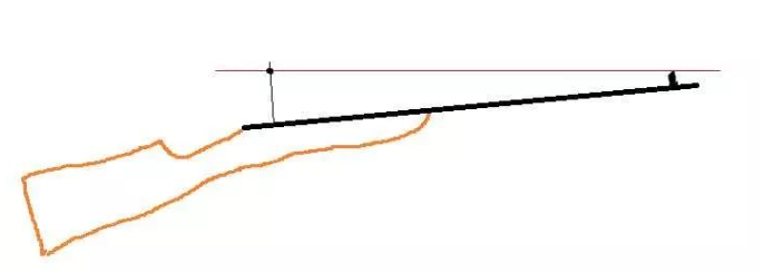 In this picture, the black line is the trajectory of the bullet, and the red line is the aiming axis, which is the extension line of the eye-sight-sight-target